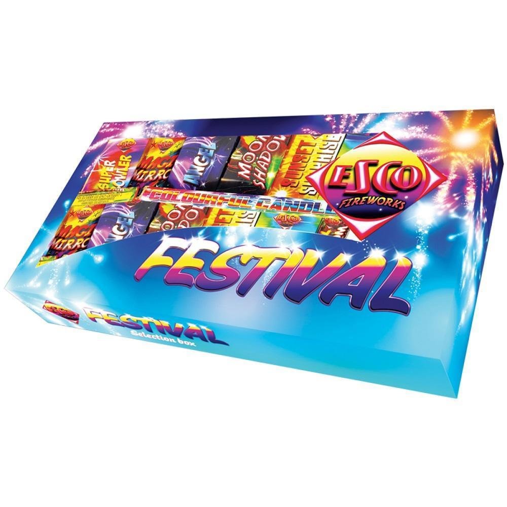 Festival Selection Box. 15 Fireworks containing a mixture of Roman candles Fountains and Mines